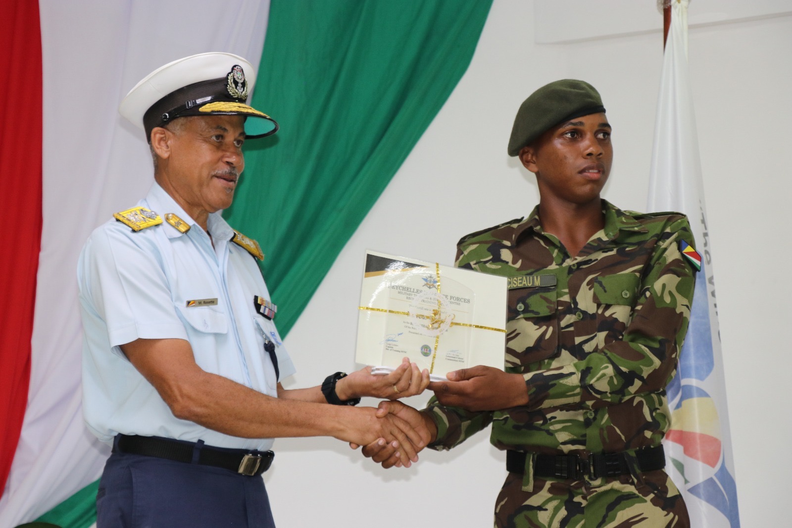 The new recruits have joined the Seychelles Defence Forces after completing their 10 weeks basic training at the Military Training Support Centre in Barbarons.