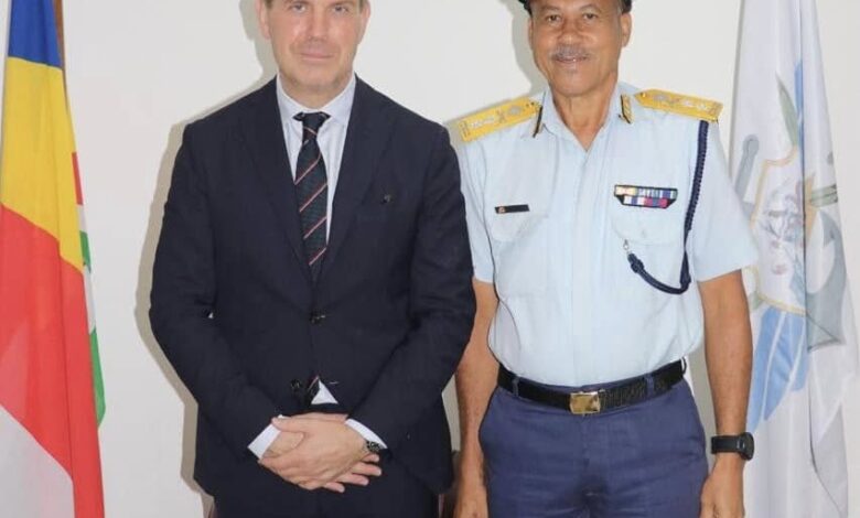 Ambassador designate of the Kingdom of Denmark to the Republic of Seychelles, H.E Mr Stephan Schonemann, paid a courtesy visit to the Chief of Defence Forces Major General Michael Rosette this morning at the Defence Forces Headquarters- Bel Eau. Present were the delegation who accompanied Ambassador Schonemann and the Deputy Chief of Defence Forces Brigadier Jean Attala.