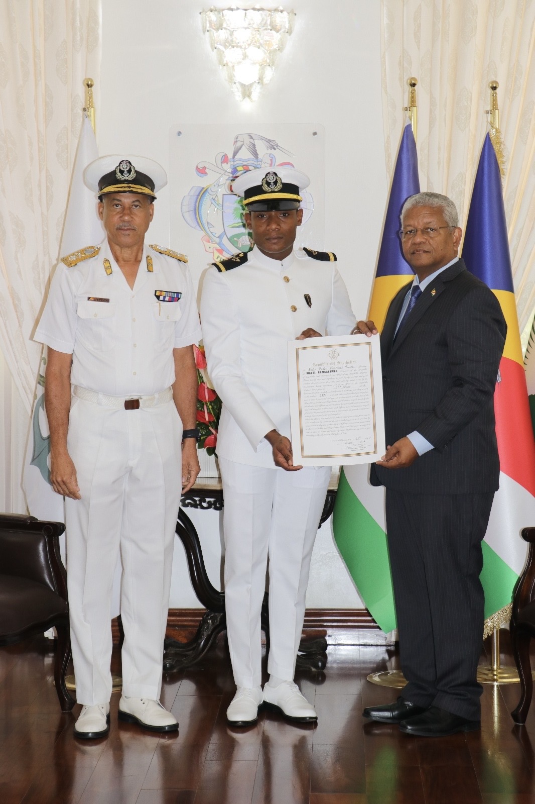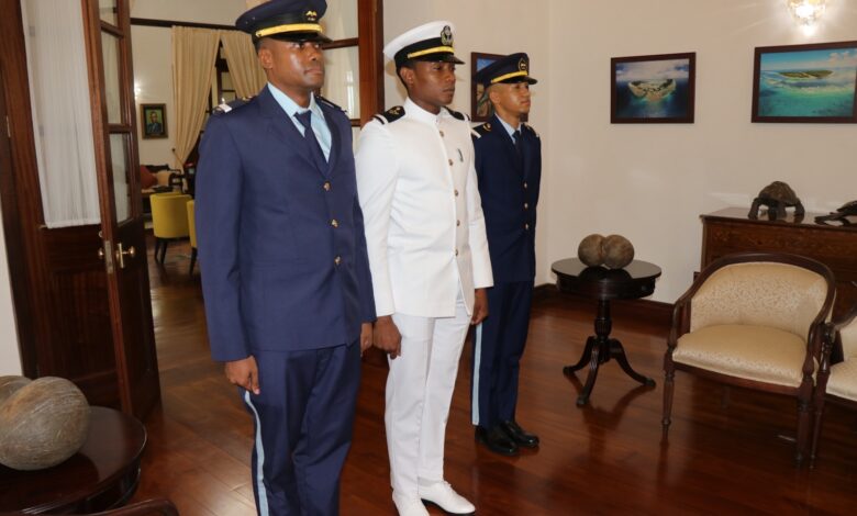 COMMANDER IN CHIEF COMMISSIONS THREE NEW OFFICERS IN SEYCHELLES DEFENCE FORCES