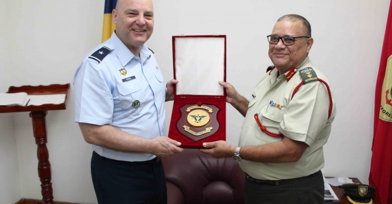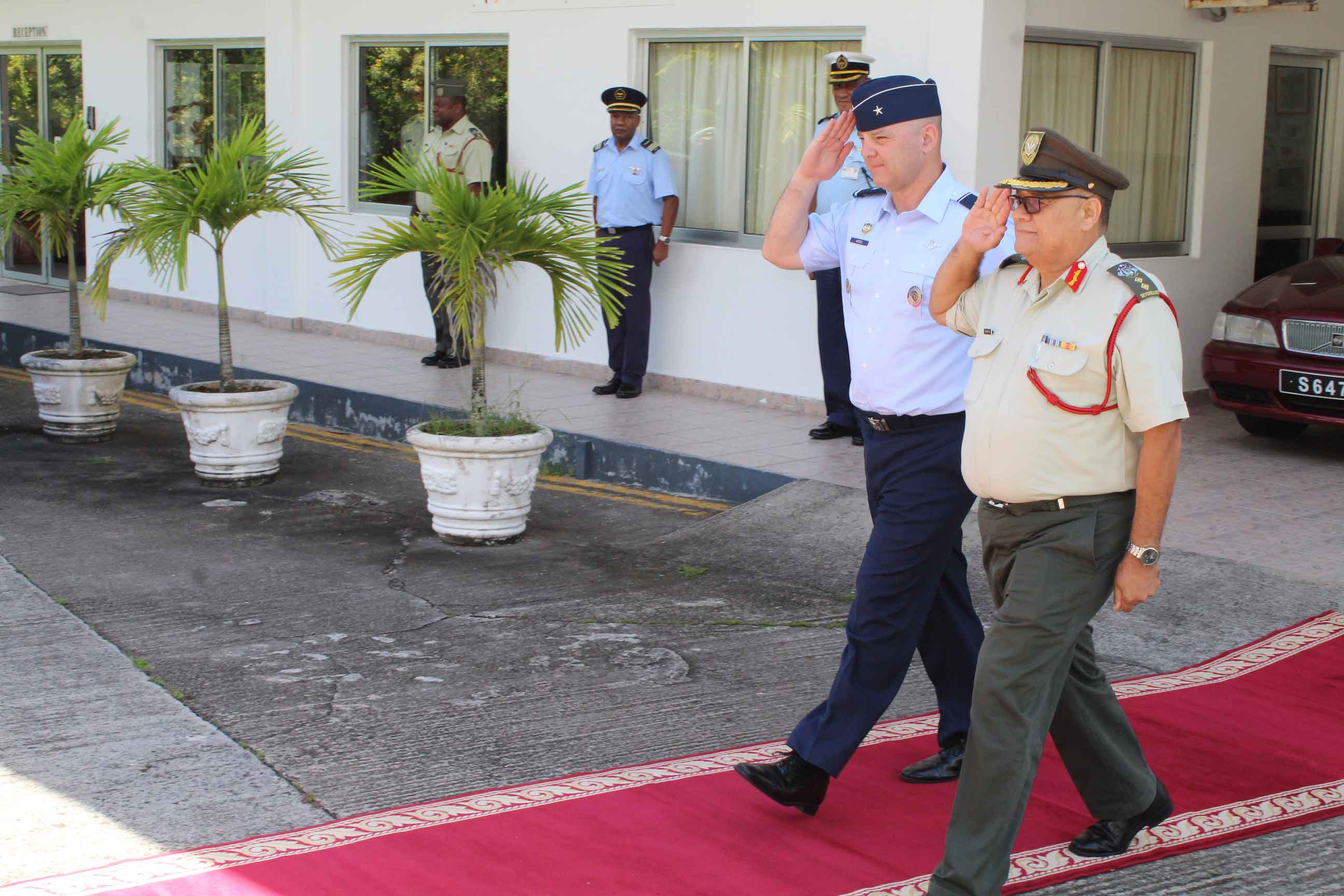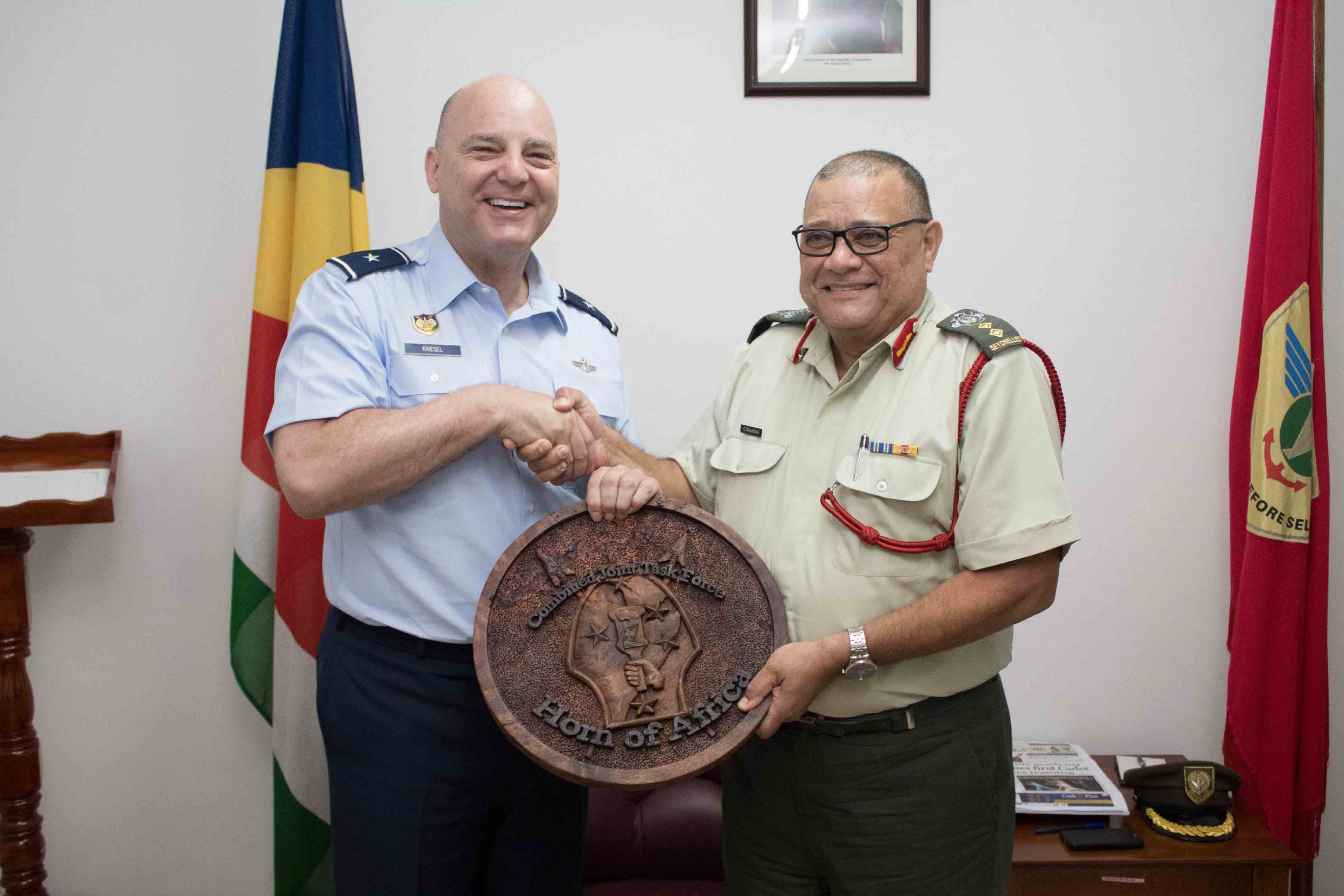 Brigadier General James R. Kriesel of the US Air Force who is also the Deputy Commanding General of the Combined Joint Task Force payed a courtesy call to the Chief of Defence forces Colonel Clifford Roseline.