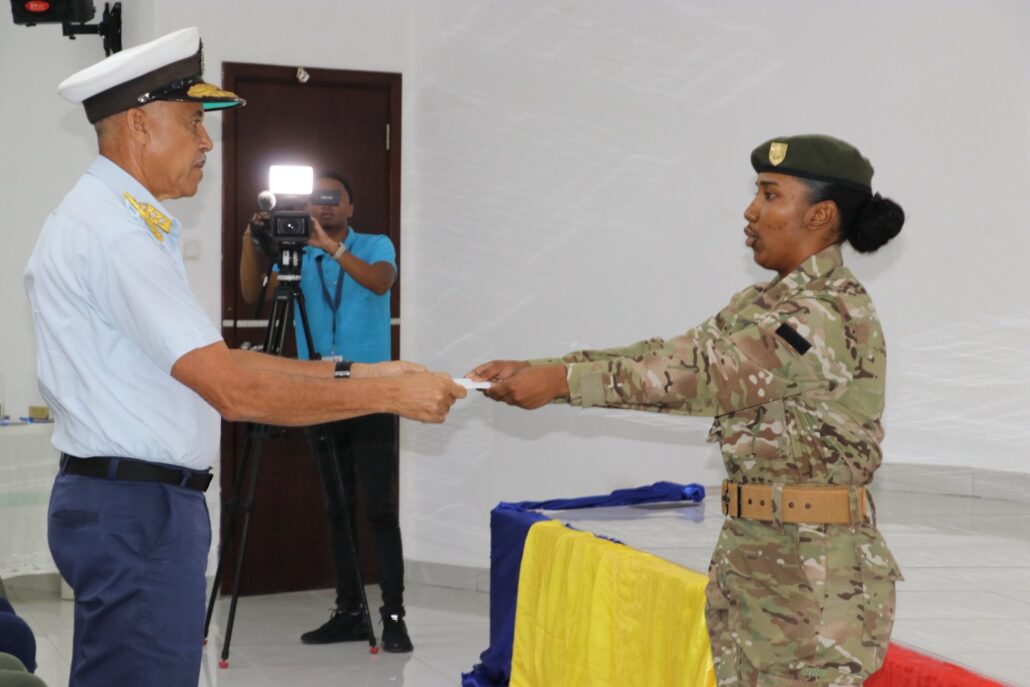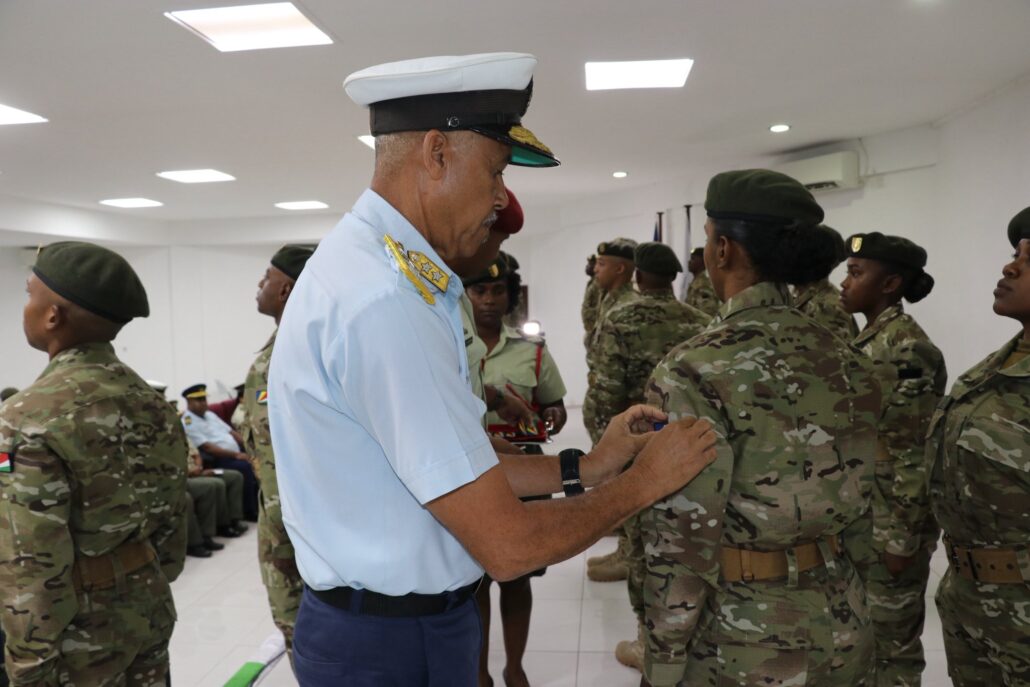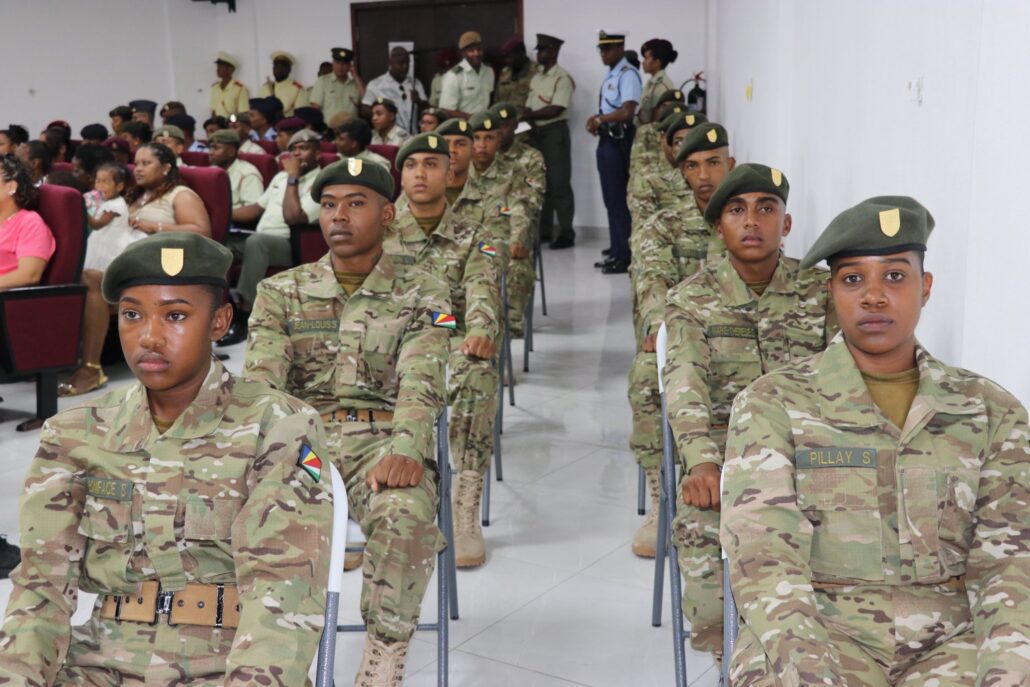 The ceremony was held at the Military Training Support Centre, lle Perseverance in the presence of Chief of Defence Forces, Major General Michael Rosette, Chief of Staff, Colonel Michael Hollanda, members of the Defence Forces Council, Unit Commanders, Senior Officers, Officers and relatives of the new recruits.