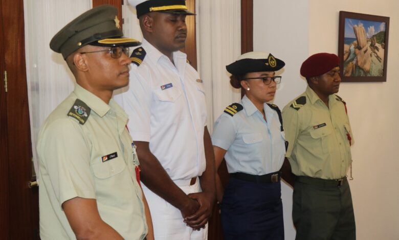 The Commander in Chief, President Wavel Ramkalawan, met with four Military officers who had been deployed overseas for official military duties today at the State House. During the ceremony the President has expressed his gratitude for their notable service and contributions abroad as well as to the Seychelles Defence Forces.
