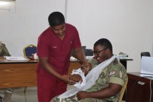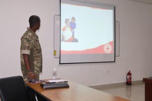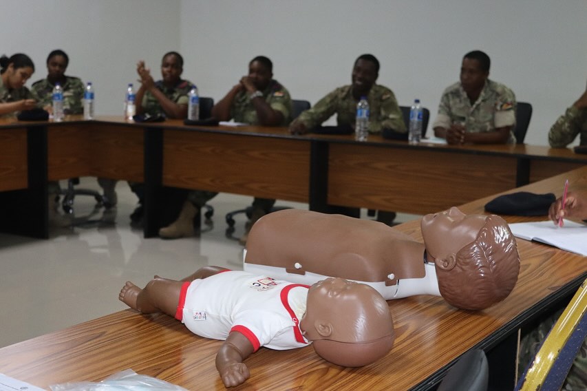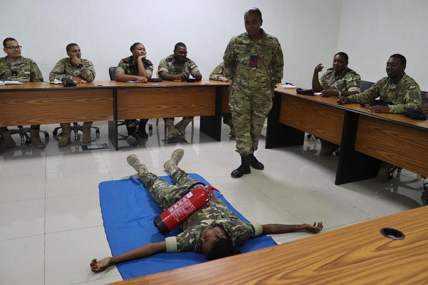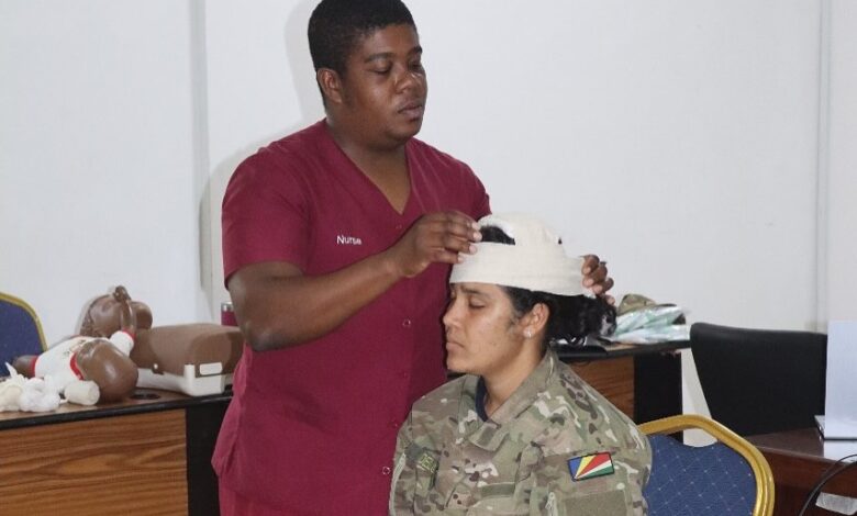 The training was facilitated by Lieutenant Sandy Ernesta (Senior Nursing Officer) and Corporal Barrack Aaron (Senior Staff Nurse), both from the Military Medical Centre (MMC). The sessions were also observed by Ms. Karine Ernesta from the Red Cross Society of Seychelles, who brought valuable insight into civilian emergency response procedures.